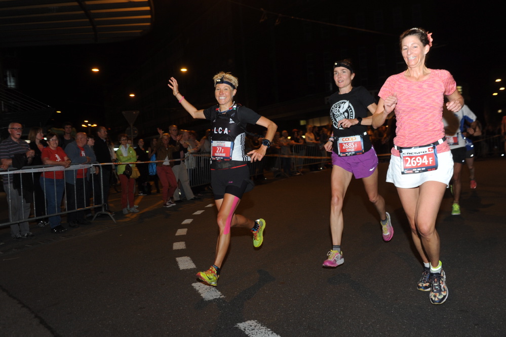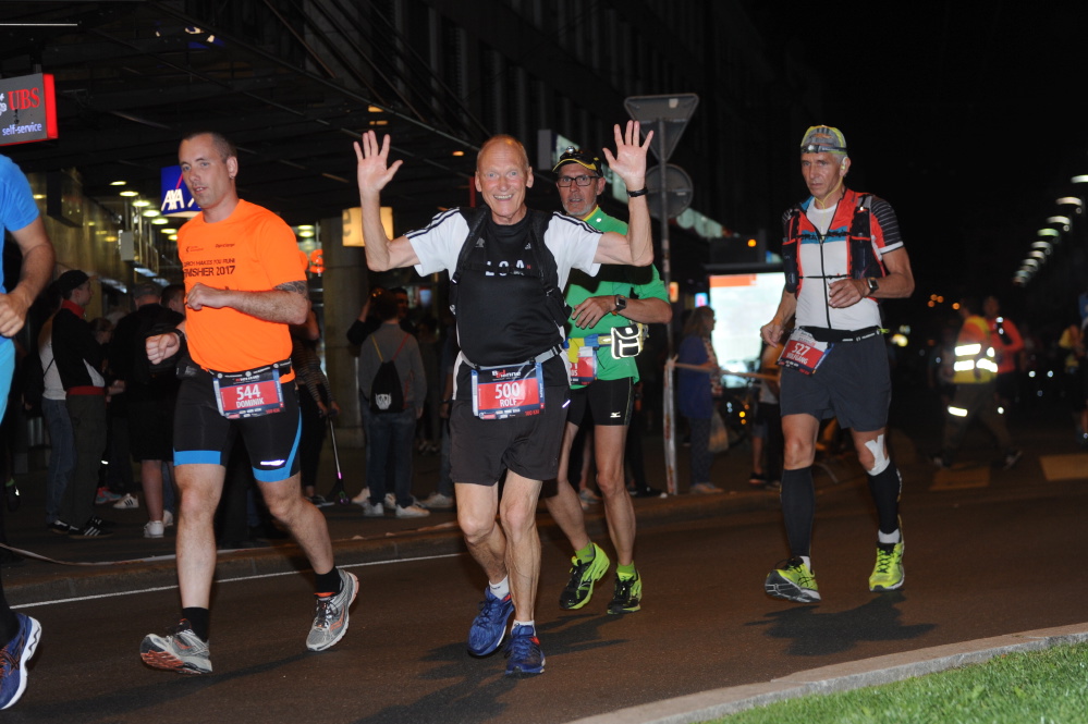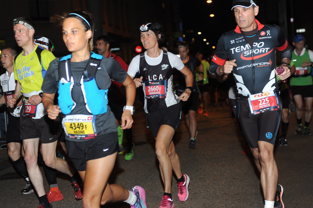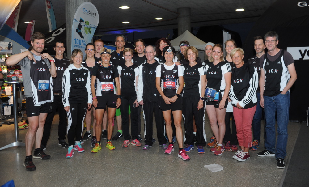 Die Zeit am Freitag blieb förmlich stehen, um 19 Uhr hatten wir das Gefühl es könnte nun endlich losgehen, doch die Sonne stand noch zu hoch am Himmel. 21. 30 Uhr, noch eine halbe Stunde, mit Einlaufen, tja besser Eintraben und zum xten Mal vorbei auf einer Toilette vertrieben wir uns die kurze Zeit. Die Sonne war nun verschwunden und die angenehme frische der Nacht machte sich bemerkbar. Und dann endlich punkt 22.00 Uhr ertönt der Startschuss und die Beine dürfen endlich tun, was sie schon den ganzen Tag wollten. RENNEN..... Rolf, Barbara, Karoline Beat, Roland und ich machten uns auf den Weg. Unter den vielen Zuschauern in der Innenstadt standen an jeder Ecke wieder unsere Fans vom LCA. Bereits an dieser Stelle ein herzliches MERCI für die grandiose Unterstützung. Vorbei an den Zuschauern gings dann Richtung Belmund und weiter in die dunkle Nacht.