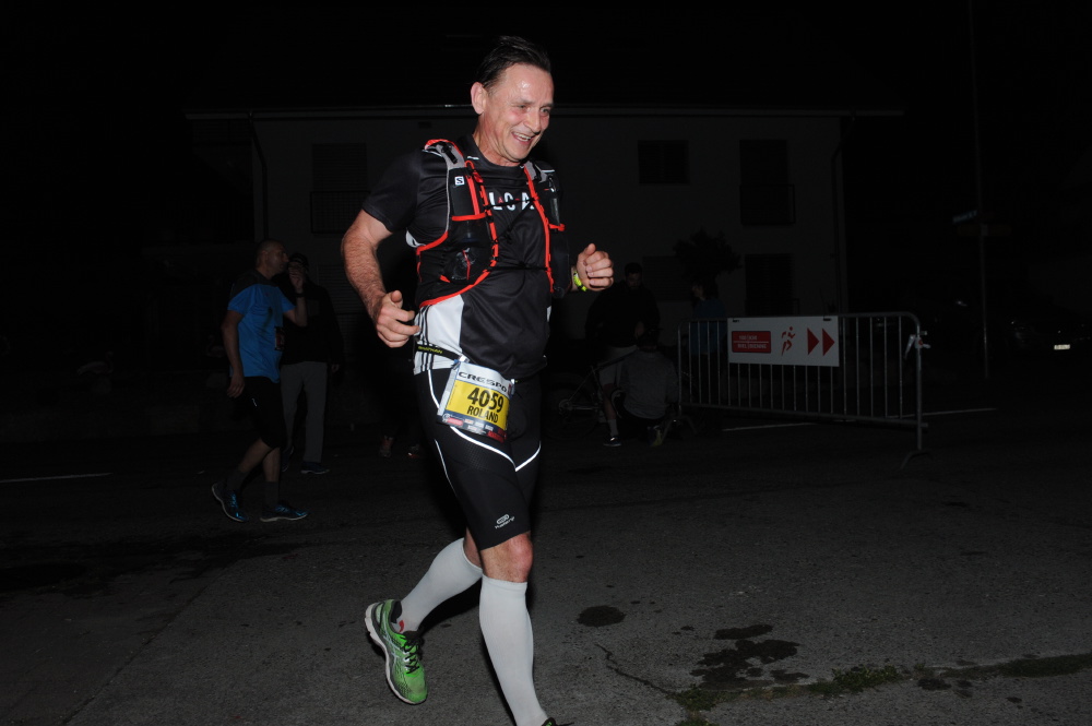 Gerechnet habe ich mit einem schön gemähten Weglein entlang des Hotschiminpfades, doch das entpuppte sich dann anders. Durch hohes, in diesem Zustand Meterhohes Gras, stapfte ich durch die Stille der Nacht. Zum Glück wurde aber diese Stille ab und zu mal unterbrochen. Sei es, weil die Staffel mich überholte, ich wieder einen Läufer überholte, ein voll geladenes LCA Auto angefahren kam, oder plötzlich wie aus dem Nichts ein Fan an der Strecke jubelte.....