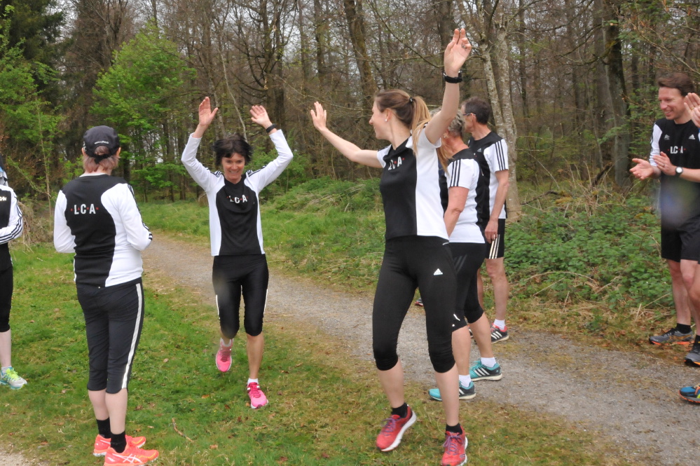 Die Gedanken an das sonnige Training vom Vortag auf dem Belpberg waren noch frisch, als es bereits ans erneute schnüren der Laufschuhe ging. Ostersamstag Nachmittag war der Treffpunkt beim Sportplatz Bodenweide und wieder traf sich eine fröhliche LCA-Läuferschar. Etwas kühler als am Vortag waren die Temperaturen, dennoch herrschten beste Bedingungen für das Laufen des geplanten Trainingsprogramms, der Américaine. In den entsprechenden Laufgruppen ging es locker mit Einlaufen los. So gelangten alle in den Bremer. Dort angekommen gab es kurze Anweisungen von Pesche über den Ablauf der Américaine und die Teams wurden zusammengestellt. Vor dem Start entledigten wir uns noch der überschüssigen Kleider. Voller Tatendrang ging es nun los. Jede und jeder seinem Tempo entsprechend laufend, wurde Runde um Runde abgespult. Die Pausen zwischen den Runden wurden genutzt um in lockerem Laufschritt auf Trab zu bleiben. Die Zeit verging schnell und es wurden viele Runden gelaufen. Mit zwei Überholungen kurz vor dem Rundenende kam der Schreiberling unerwartet als Sieger ins Ziel. Gegönnt wurde allen ein Zieleinlauf mit frenetischem Applaus. Eine kurze, lockere Schlaufe im Wald und anschliessend vorbei am Hallenbad und an den Schrebergärten führte uns zurück zum Ausgangspunkt des heutigen Trainings.
