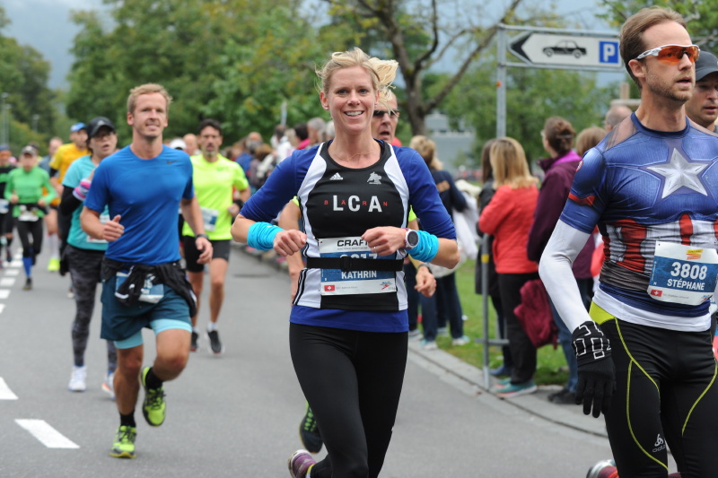 Ein richtiges Lauffest wohin man schaut! Ich winke den begeisterten Menschen am Strassenrand, klatsche Kinderhände ab und freue mich über ihre Unterstützung. Bis Lauterbrunnen geht’s zügig voran, dann ins Tal hinein und wieder hinaus. Mit diesem Abschnitt habe ich am meisten Mühe, gefühlt werde ich da dauernd überholt. Doch steil bergan Richtung Wengen ist wieder mein Element. Schnell gehend hoch zu kommen gibt Power. Und dann tut ein kurzer Stopp bei den LCA-Leuten gut – tausend Dank, dass ihr hier seid!