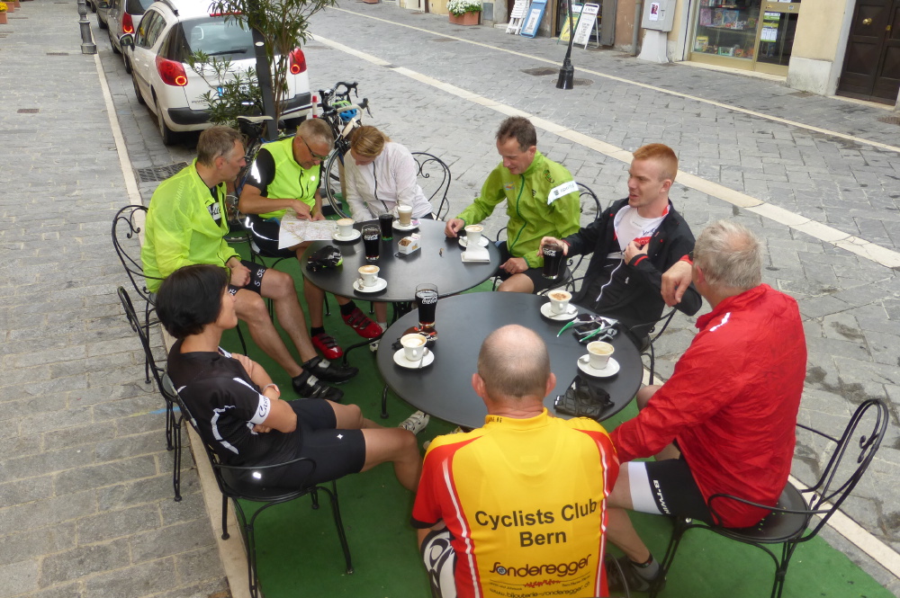 Die nächsten Tage standen ganz im Zeichen des bevorstehenden Novecolli. Neben dem erfahrenen Tinu wollten sich mit Luc und Urs zwei Neulinge an das legendäre Granfondo Radrennen wagen. Unter kundiger Führung wurden die Tagestouren so gestaltet, dass wir einen möglichst guten Einblick auf die Rennstrecke erhalten konnten. Am Morgen starteten wir jeweils als LCA-Gruppeto und blieben bis zum ersten Kaffee-Halt zusammen.