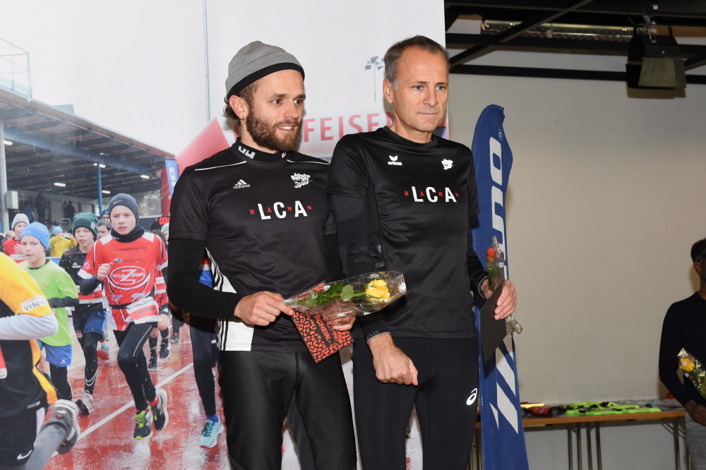 Vor dem ersten Start dem Staffelrennen um 9:30 war alles bereit und es herrschte ein emsiges Treiben der eintreffenden LäuferInnen. Der Platzspeaker Heiner Wenger begrüsste die sich vorbereitende Läuferschar und die Zuschauer im Stadion. Die Temperaturen waren kühl um nicht zu sagen kalt, doch die sich immer mehr zeigende Sonne versprach ein schönes Laufevent. Mit 6 LCA-Staffeln war die Beteiligung sehr gross. Mit Chrigu Fischer und Dani Nacht hatten wir gar ein Team mit Ambitionen auf die vordersten Ränge am Start. Der Startschuss fiel und mit rasantem Tempo ging es los aus dem Stadion in den Wald. Je zweimal 1.6 Kilometer mit einer Steigung und eine halbe Runde im Stadion mussten gemeistert werden. Chrigu und Dani hielten Wort. Mit zunehmender Renndauer arbeiteten sie sich auf Rang 3 vor. Auch die übrigen Staffeln gaben Vollgas und so konnten Barbara und Niklaus am Ende über Kategorierang 2 jubeln.