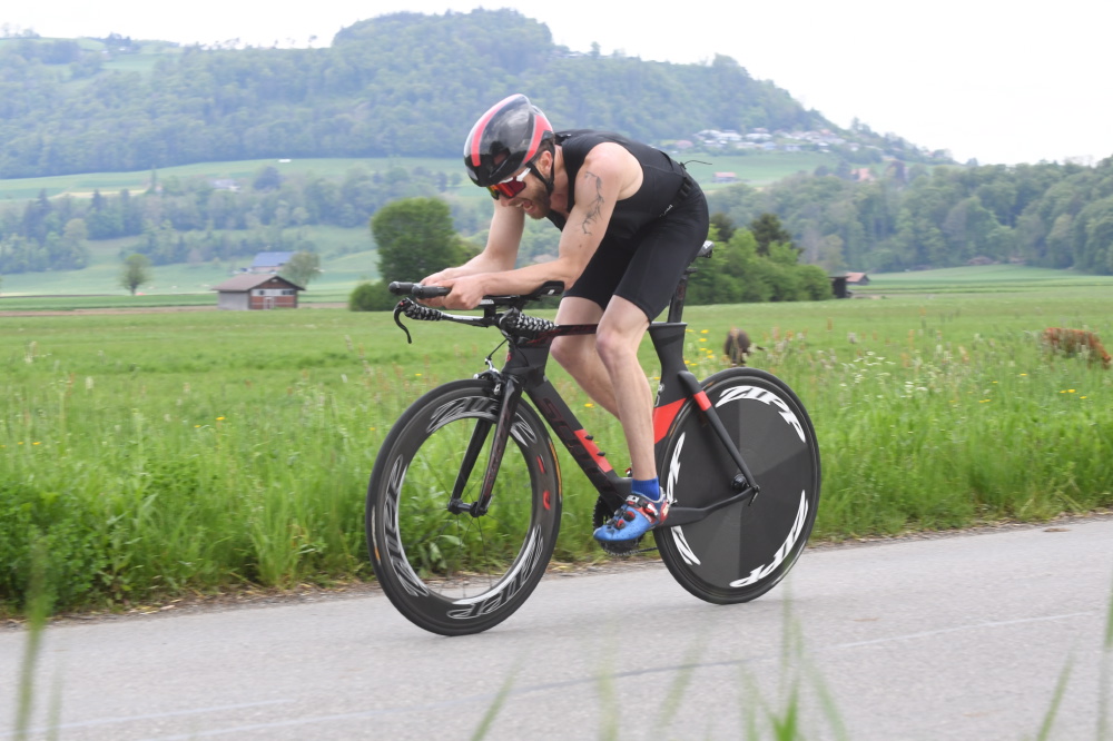 aufzuwärmen. Dort fanden sich nach und nach die Rennfahrer*innen ein. Dann kurz vor dem Rennen noch ein zwei Tritte in die Pedale und ready to go! Los gings auf die drei Runden, insgesamt 26.4 Kilometer. Hoch nach Kirchdorf und wieder runter nach Mühleturnen. Das Wetter war stabil, manchmal drückte ein wenig die Sonne durch die dichte Wolkendecke. Es machte ziemlich Spass. Ich kam auf den flachen Geraden in einen Art Temporausch. Welch berauschendes Gefühl mit in den relativ steilen Anstieg nach Kirchdorf zu nehmen, um dann mit vollem Garacho wieder hinunter zu brettern. Auch der Tinu war dabei. Er stand immer irgendwo auf der Strasse oder am Feld um ein Foto oder zwei zu knipsen. Welch toller Support! Die drei Runden waren dann schnell vorbei und ich war sehr zufrieden mit der Zeit. Danach hiess es warten. Es fing an zu Regnen. Mit Tinu am Festbank nahm ich eine leichte Verpflegung zu mir. Der Regen liess nicht nach, ganz im Gegenteil. Das Aufwärmen war dann eher ein Durchnässen und kurz bevor der Jagdstart zum Lauf von drei Runden, insgesamt 7.7 Kilometer losging, fand ich mich beim Start ein. «So, Jäggli abzieh und warte bis mi Name grüeft wird.» Durch den starken Regen wurde mir im Trägershirt schnell kalt, dann endlich: «Daniel Nacht go!»