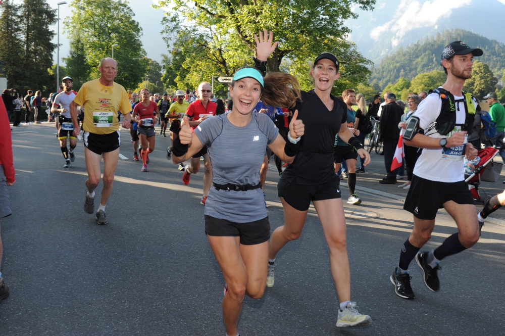 Zehn Tage vor dem Jungfrau-Marathon fand unsere letzte Besprechung mit Pesche statt. Letzte Fragen und Unklarheiten konnten wir klären. Unsere Nervosität stieg langsam aber sicher an. Und dann war es endliche soweit. Unser erster Marathon stand vor der Tür. Auf dem Perron trafen wir weitere LCA-Mitglieder an. Insgesamt starteten 11 Personen vom LCA Bärn. Als wir in Interlaken ankamen, machten wir uns startbereit und gaben das Gepäck und die Wertsachen ab. Wir suchten unseren Startblock auf und warteten auf den Startschuss. Bereits nach den ersten Metern nahm die Nervosität ab und viel Freude am Laufen kam auf. Auf der Strecke wurden wir von weiteren LCA-Mitgliedern, Freunden und Bekannten bejubelt und unterstützt. Dies motivierte uns und gab uns Power. Zudem wurden wir von der wunderschönen Bergkulisse und dem prächtigen Herbsttag verwöhnt.