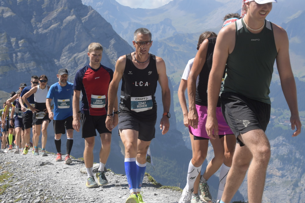 Mit Zurückhaltung und mit genug Reserven durch die ersten 26 km bis zum steilen Anstieg nach Wengen gelangen, dass war das Motto. In Lauterbrunnen angekommen fühle ich mich super: die Beine sind noch nicht müde und die Energiespeicher noch ausreichend gefüllt. Entsprechend schnell bin ich in den Aufstieg gestartet. Auch hier hat mich die Publikumsstimmung noch zusätzlich angespornt das Tempo zu erhöhen. Nun kurz vor dem 29 km dann ein ernüchternder Moment: leider die ersten Krämpfe in den Beinen. Jetzt ruhig bleibe und regelmässig verpflegen. Die flachen Passagen waren von nun an eine Tortur, aber der Wille das Ziel zu erreichen war grösser als alle anderen Gedanken. Von nun an galt das Motto: Zähne zusammenbeissen und weitere Krämpfe vermeiden.