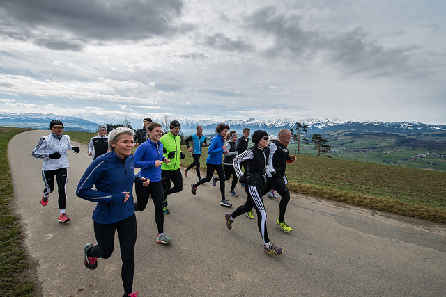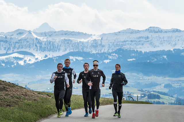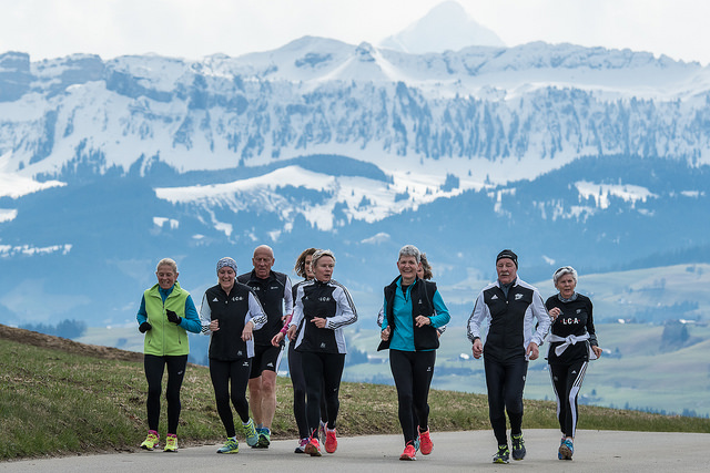 Jetzt wohne ich seit fast 15 Jahren in Bern und war noch nie auf dem Belpberg, sage ich irgendwann während des morgendlichen Karfreitagstrainings des LCA. Was für ein Versäumnis. Der Blick reicht über das Aaretal bis zum Thunersee. Vor allem aber beeindruckt das weite, noch immer verschneite Alpenpanorama mit der Stockhornkette und dem Niesen. Im Hintergrund lässt sich sogar das Jungfraumassiv ausmachen, wie Läufer bemerken, die den Jungfraumarathon im Herbst planen.
