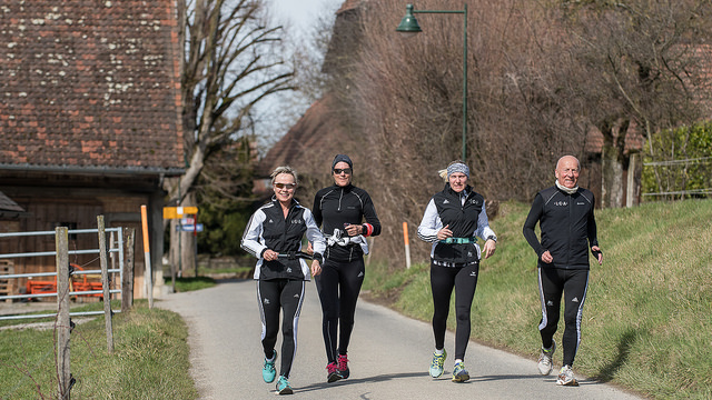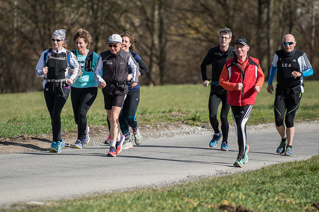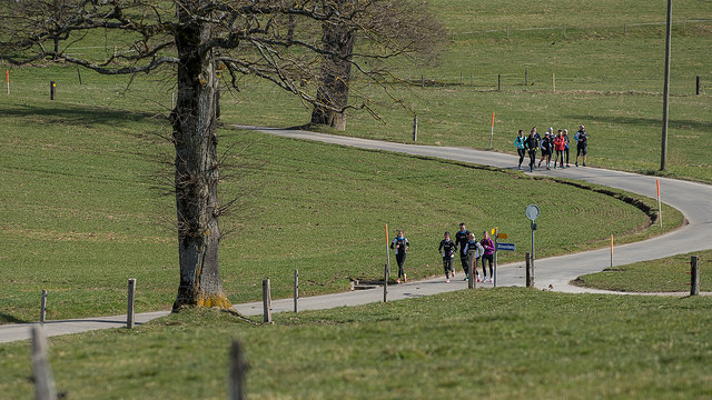 Jene unter uns, die nach dem trainingsfreien Sonntag schon erste Entzugserscheinungen verspürten, hatten Glück und eigentlich alle andern auch, denn am Ostermontag ging’s schon wieder los. Vom Treffpunkt Bodenweid aus starteten wir in wohldosiertem Laufrhythmus topmotiviert in fünf Laufgruppen für den österlichen Longjog. Fast augenblicklich verstummte der Strassenlärm und im Chünizbergwald begleitete uns schon Vogelgezwitscher, vor allem als unser munteres Geplauder in den ersten Steigungen leiser wurde. Nach Niederwangen präsentierten sich die Aussichten definitiv ländlich. Am Horizont die noch tiefverschneiten Bergrücken des Gantrisch, in Herzwil geschichtsträchtige Bauernhäuser mit ihren Stöckli und gleich vor unseren Nasen auch Misthaufen samt ihren zottigen Produzenten, die uns freundlich bestaunten. Nach rund 2 ¼ Stunden waren alle Gruppen zurück, mit einem guten Gefühl in den Beinen und im Kopf und bestens dokumentiert von Pesches Kamera. Ein herzliches Dankeschön, allen die dieses aufgestellte Training ermöglicht haben!