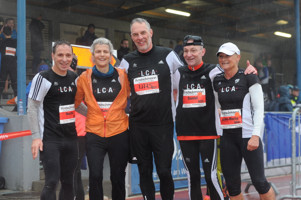 Nicht zu beneiden waren die Helfer insbesondere die Streckenposten die während all den Läufen im Dauerregen ausharren mussten. Die Niederschläge liessen nicht nach und so hatte auch der Hoffotograf so seine Mühe mit angelaufenen Objektiven. Das grösste Starterfeld zeigte sich dem Regen zum Trotz beim Hauptlauf. Für Rahel war es nach der Staffel der zweite Start an diesem Tag und mit Alain und Reto ergänzten zwei weitere LCA Läufer das Startfeld.