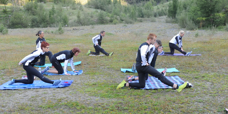 Nach einem ausgiebigen Frühstück stand das Stretching mit Ursina auf dem Programm. Die Bedingungen waren gut, wir konnten dies draussen bei frischer Morgenluft vornehmen. Ein Mätteli oder Tüchli diente als Unterlage. Das Dehnen umrahmt mit den Anweisungen von Ursina fand ich sehr gut. So sollte jeder Tag beginnen!
