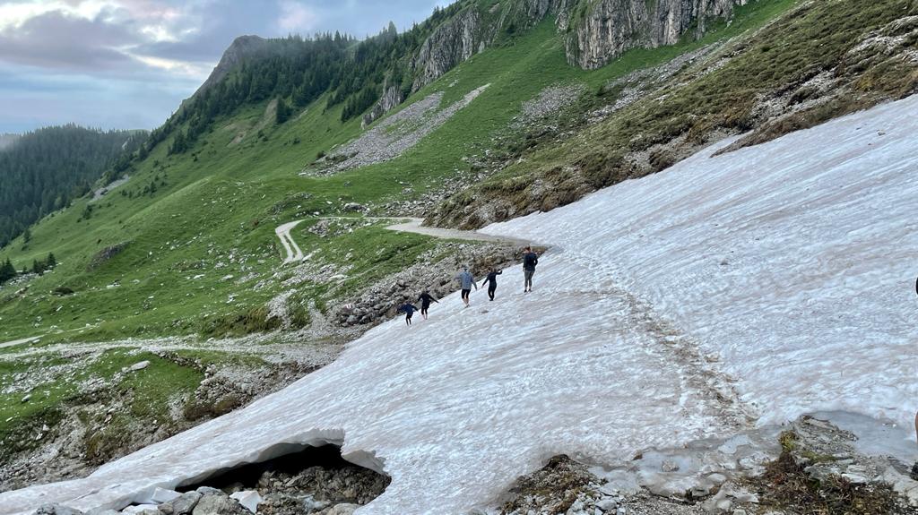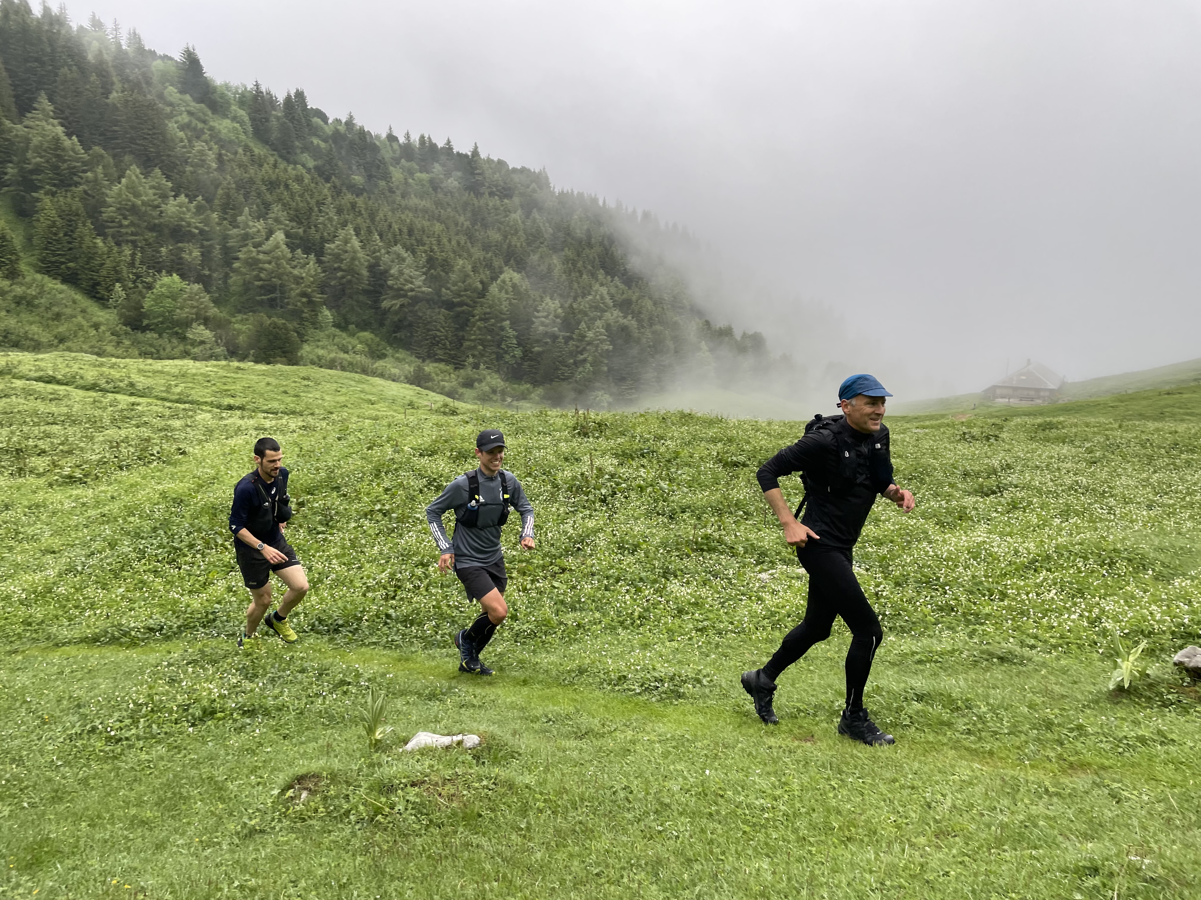 Nach kurzer Ansprache, Instruktionen und Einteilungen ging es in 3 Gruppen los um verschieden lange Routen in Angriff zu nehmen. Alle jeweils am und um dem Gantrisch, dem Markanten Berg der Gebirgskette und dem Namensgeber der Region. Später als wir bereits einige Höhenmeter überwunden hatten, jedoch noch nicht der höchste Punkt unserer Route, sahen wir runter und konnten noch gut die Walking Gruppe erspähen und die Blitzlichter aus dieser Richtung war kein Gewitter sondern Tinu, welcher wieder etliche wundervolle Mom