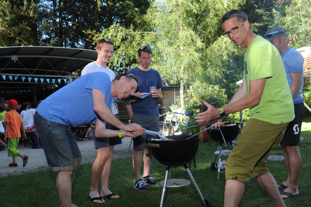 Dort wird bereits fleissig das Fleisch auf dem Grill gewendet und kontrolliert, ob es schon «durch» ist (da kommt mir spontan eine gewisse Werbung in den Sinn). Für alle hat’s genug zum Essen und auch zum Trinken. Dani Bhend ist übrigens das Geburtstagskind und spendiert die Getränke (danke nochmals!). Beim Salat- und Dessertbuffet bleibt zum Schluss nicht mehr viel übrig und das ist auch gut so. Wir hatten ja alle Hunger!! Man bemerkt gar nicht, wie die Zeit vergeht beim gemütlichen Beisammensein. Es ist aber schon dunkel, als wir uns auf den Heimweg machen und den schönen ausgiebigen Tag ausklingen lassen. Dieser war für mich wirklich ausgiebig, denn die Nachtruhe war - im Gegensatz zur letzten – ziemlich spät (so ca. 01.30 Uhr ).
