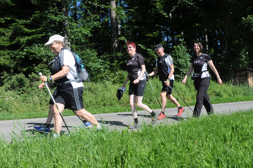 Unterwegs bleibt genug Zeit, die wunderbare Aussicht zu geniessen und sich - je nach Bedarf - zu verpflegen (wichtig für mich). Die abwechslungsreiche Strecke bei tollem, nicht zu heissem Wetter beenden wir nach 2 Std 40 Min und werden sehnlichst von den bereits zurückgekehrten LCA’lern mit einer La-Ola-Welle empfangen.