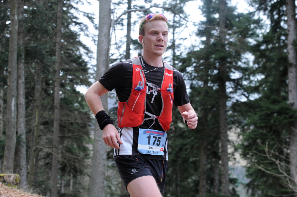 Der Lauf ist gut organisiert und so machen sich pünktlich um 09.00 Uhr rund 1200 trailbegeisterte Läufer auf die 52 Kilometer lange Strecke. Die Laufstrecke ist abwechslungsreich; führt zuerst durch Rebberge, anschließend in ständigen Auf und Ab durch den Wald nach Osenbach. Wanderwege und Forststrassen wechseln sich ab. Tinu verpflegt mich wie abgemacht, ich fühle mich gut, alles läuft nach Plan. Auf den nächsten 15km erklimmen wir Läufer den höchsten Punkt des Rennens, den Petit Ballon (KM32) und vernichten zudem den größten Teil der 2300 Höhenmeter. Vom Petit Ballon aus geht es, bis auf zwei Gegensteigungen, nur noch runter. Für mich waren Km 32-38 die wohl härtesten. Ich habe mich, im glauben Tinu auf dem Petit Ballon anzutreffen, an den Verpflegungsposten nicht ausreichend verpflegt.