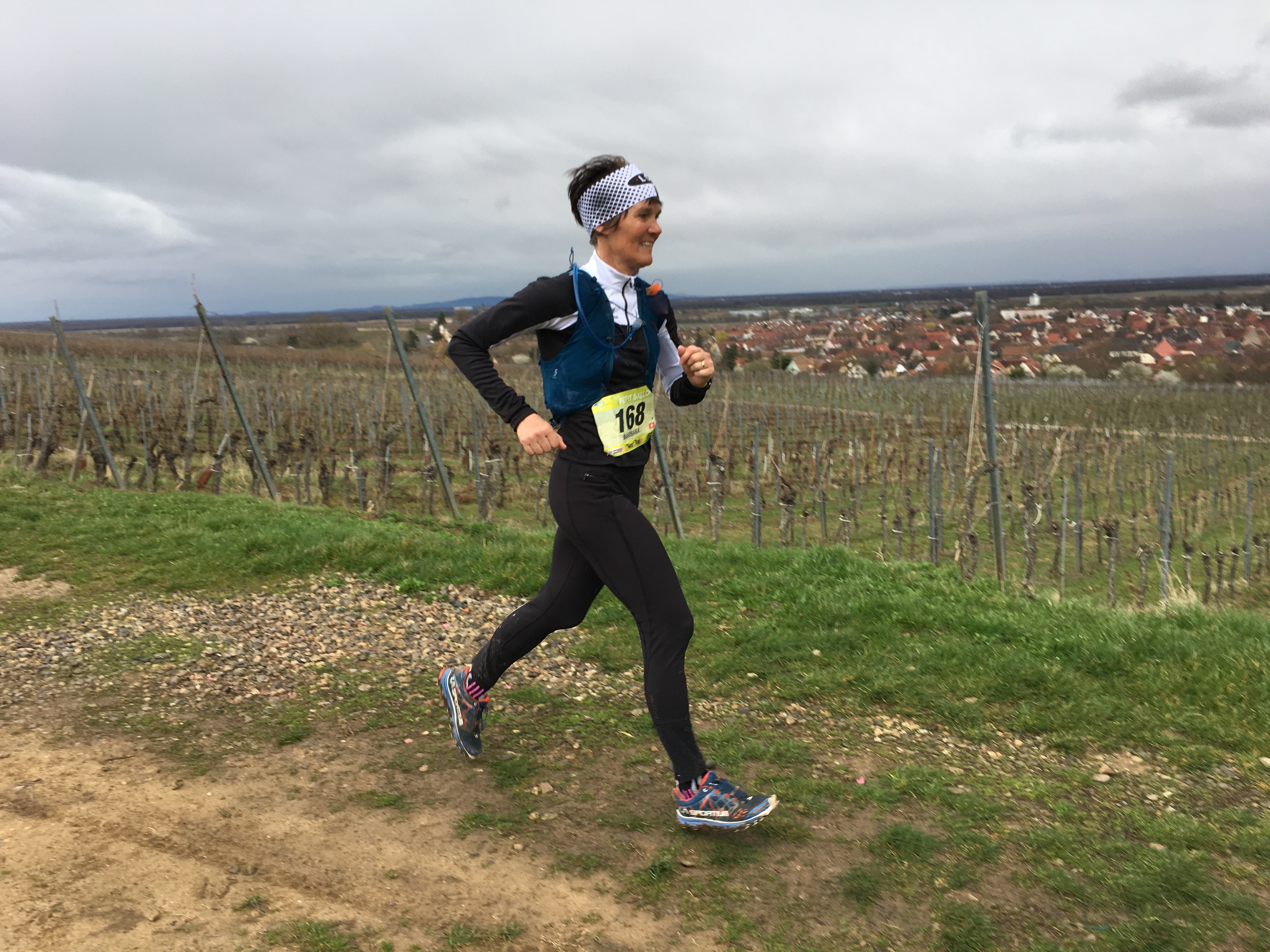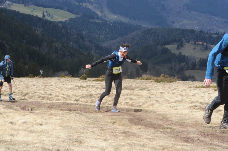 Mit dem Startschuss wurde das Läuferfeld mit 1200 Startenden auf die Strecke geschickt und zog sich gleich in die Länge. Zuerst durch die Strasse von Rouffach gings schon bald durch die sanften Rebberge. Alles passte Bestens auf den ersten Kilometern und auch in der Folge konnte Barbara im vorderen Drittel aller mitlaufen. Einen kurzen Halt bei den offiziellen Verpflegungsposten, Essen und Trinken fassen und weiter dem höchsten Punkt entgegen. Der Aufstieg führte zuerst durch endlose Wälder. Doch irgendwann ist auch in den Vogesen die Waldgrenze erreicht. Es folgte der Anstieg zum Gipfel des Petit Ballon auf einer kargen, baumlosen Flanke. Ein heftiger, kalter Westwind, der die angekündigte Kaltfront zügig vorantrieb, peitschte über die Krete. Auf der letzten «Rampe» erwies er sich jedoch als Helfer und mit Rückenwind flog man förmlich über den Kulminationspunkt. Nur fliegen ist schöner!