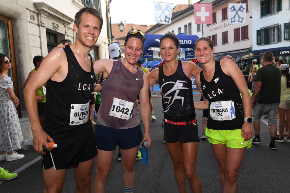 Kurzes Einlaufen zusammen mit Tamara, Chantal und Oli die sich ebenfalls auf ein schnelles Rennen einstimmen mochten. Im kleinen Städtli erfolge pünktlich der Start und das Läuferfeld von 220 Läufer*innen zog schn ell an den Zuschauern vorbei. Eine kleine Runde rund ums Städtli, zweite Passage duchs Städtli, über die Holzbrücke und der Aare entlang zum Wendepunkt. Das Feld der Protagonisten zog sich in die Länge. Oli mit kleinem Abstand zur Spitze folge in der ersten Verfolgergruppe. Auf den Fersen bereits die schnellsten Frauen mit Priska und Céline Aebi eine schnelle Läuferin aus der Region und Mitfavoritin. Nochmals fünf